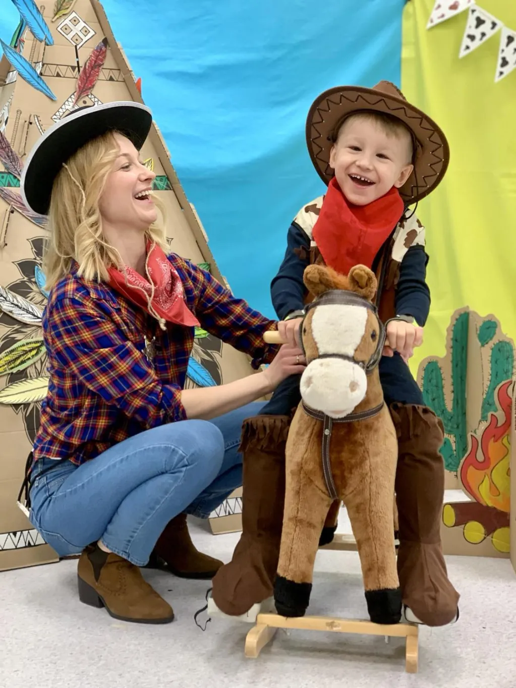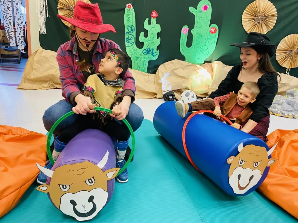 Misiowe Przedszkole zamieniło się w Dziki Zachód, wałki stały się bykami, a krówkowe balony – prawdziwymi krowami! Rewelacyjne przebrania, Kowboje i Indianie, muzyka country, rodeo i wiele, wiele więcej… Fotografie prezentują jak niesamowite atrakcje przygotowane zostały dla przedszkolaków.