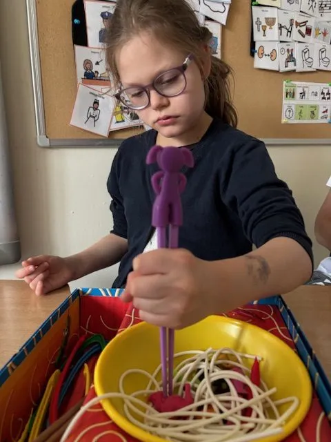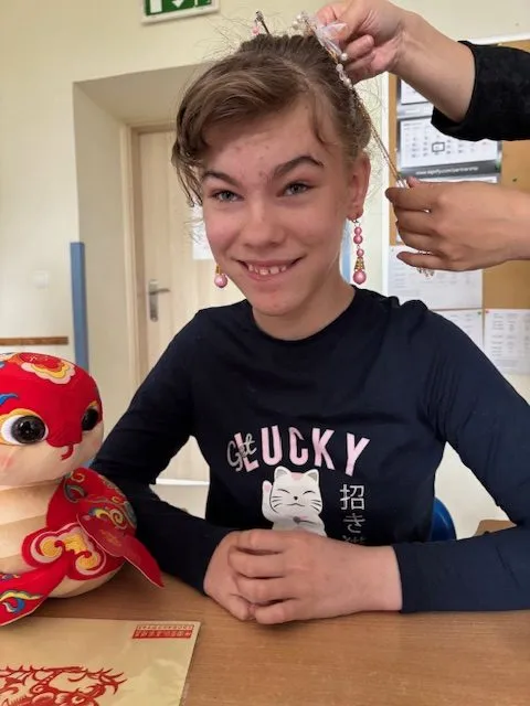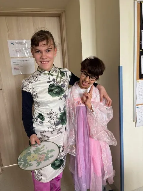 W ostatnim tygodniu naszą klasę odwiedziła mama jednej z uczennic, pochodząca z Chin. Dzięki temu wyjątkowemu spotkaniu mieliśmy okazję przenieść się – choć na chwilę – do innej części świata i poznać bogatą kulturę Chin. Usłyszeliśmy opowieści o chińskich tradycjach, zwyczajach, strojach i potrawach. Dziewczynki z radością przymierzały barwne, tradycyjne ubrania, a wszyscy z zaangażowaniem próbowaliśmy jeść pałeczkami – co wcale nie było takie łatwe! To niezwykłe spotkanie nie tylko wzbogaciło naszą wiedzę, ale też otworzyło serca na piękno innej kultury.