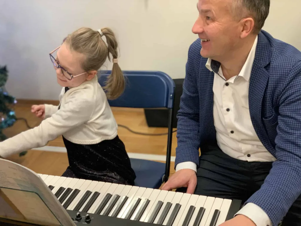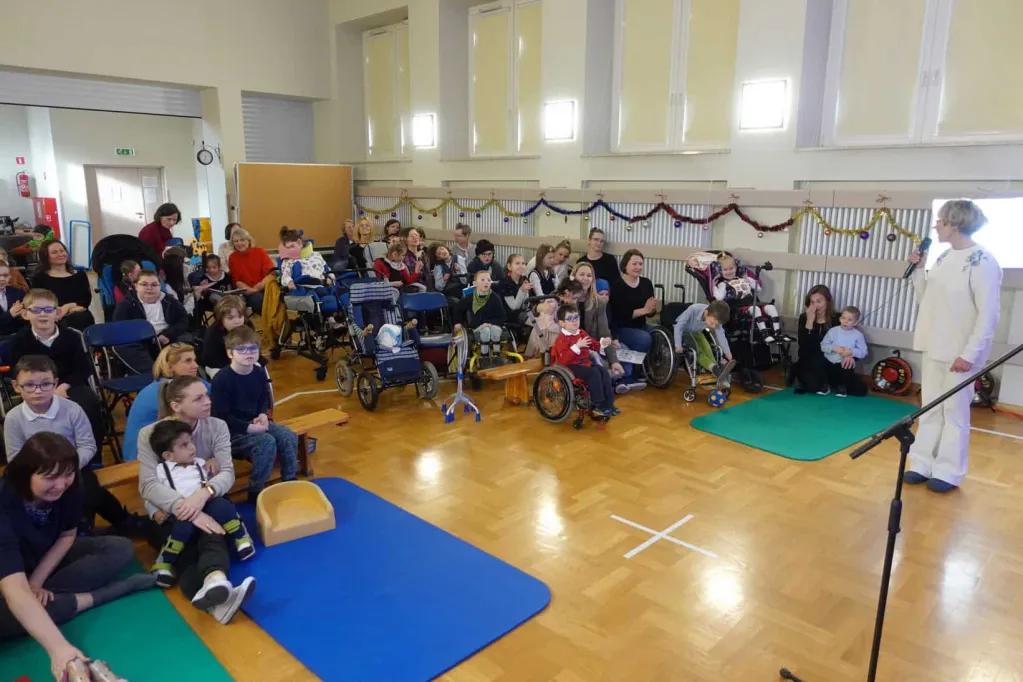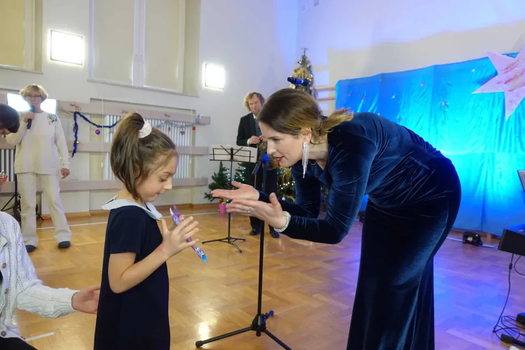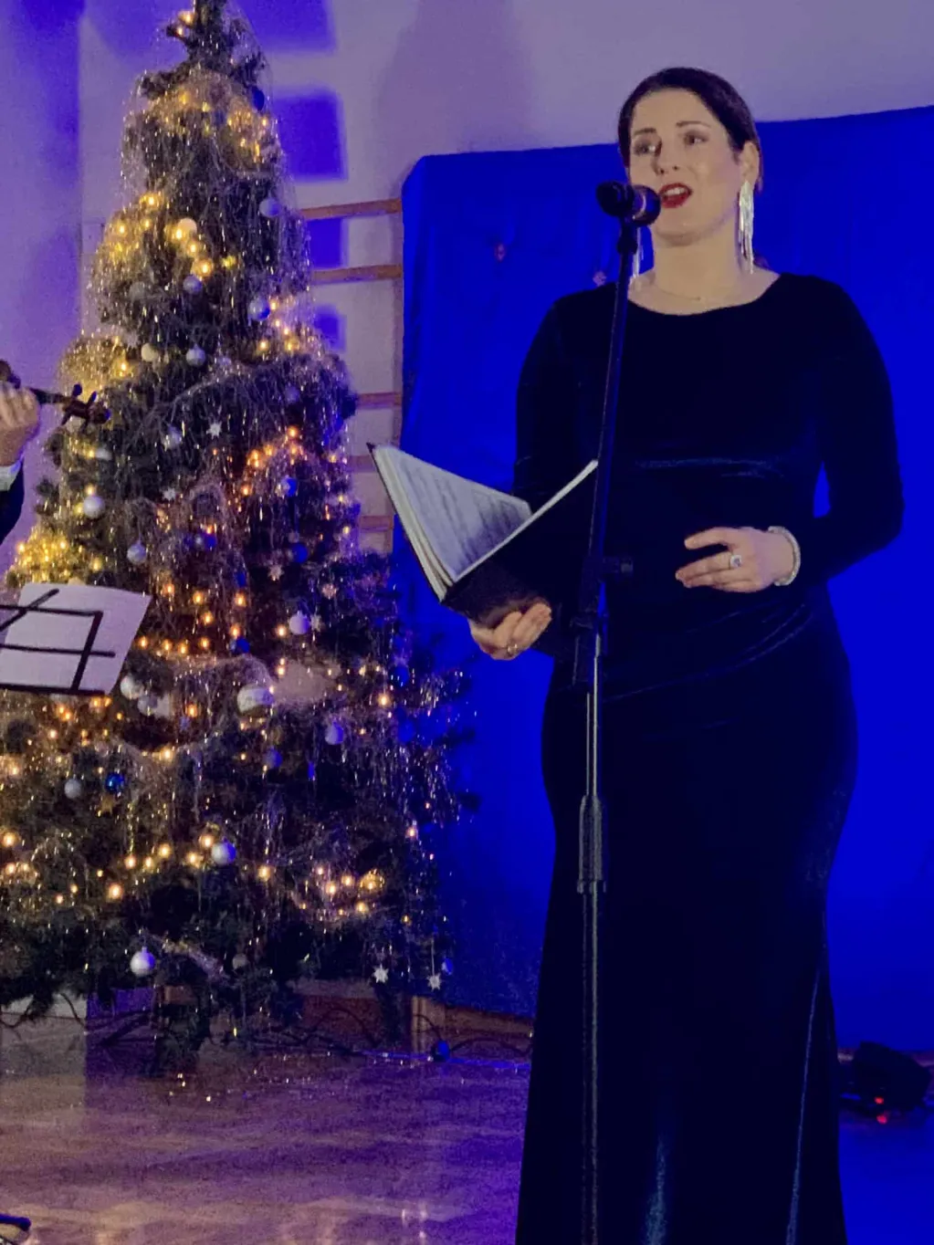Sopranistka Opery Narodowej pani Lidia Kitlińska zaśpiewała dla przedszkolaków i uczniów klas młodszych znane polskie kolędy przy akompaniamencie skrzypcowym pana Jana Czyżewicza i fortepianowym pana Marcina Prokopiaka. Artyści i uczniowie byli tego dnia w strojach galowych, jak przystoi na koncert muzyki operowej, który odbył się tym razem wyjątkowo w sali gimnastycznej przy Białobrzeskiej 44. Do Teatru Narodowego wybierzemy się kiedy indziej bo scena operowa zawitała dzisiaj do naszej szkoły.