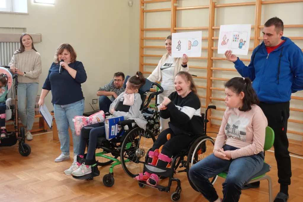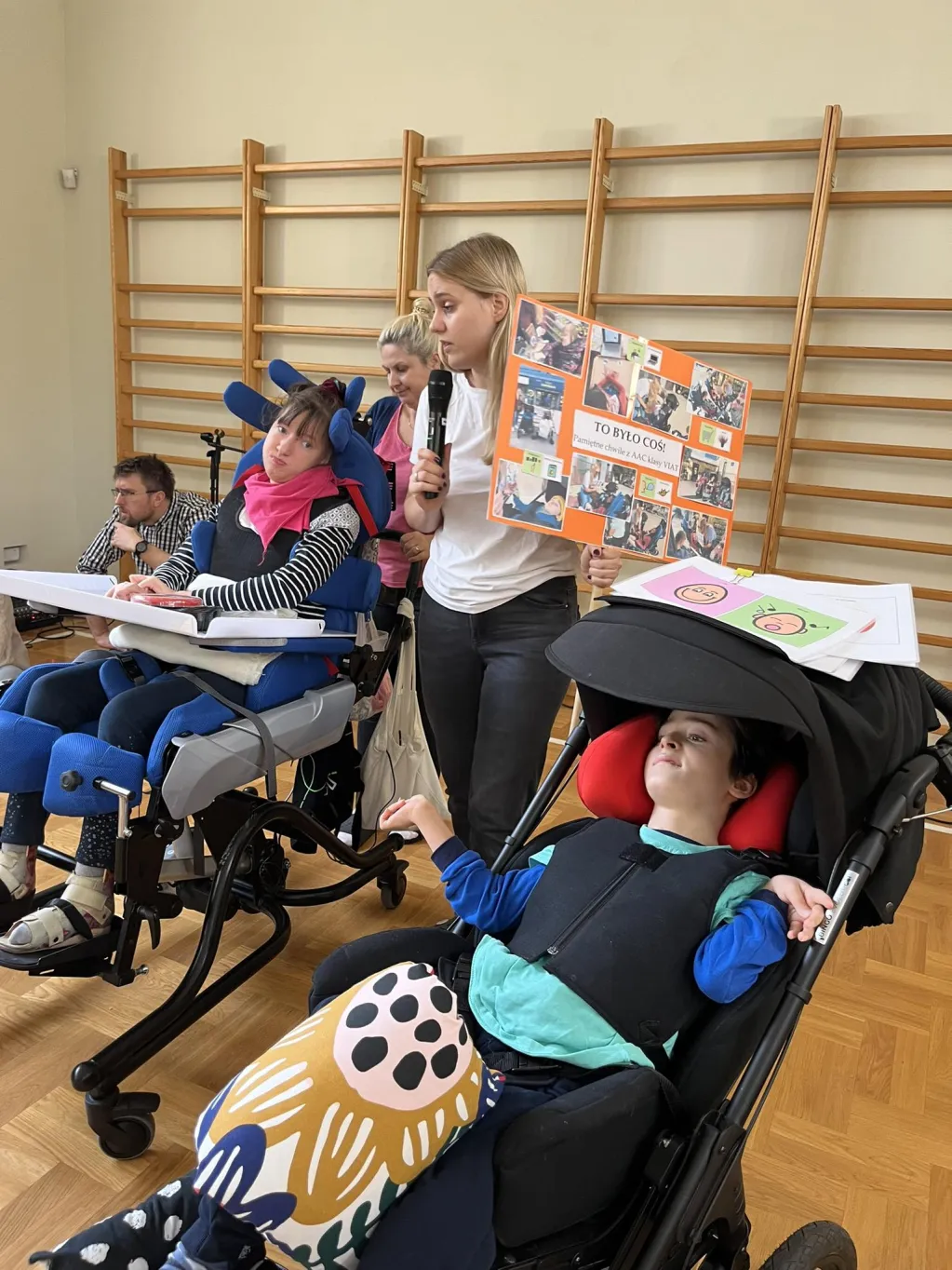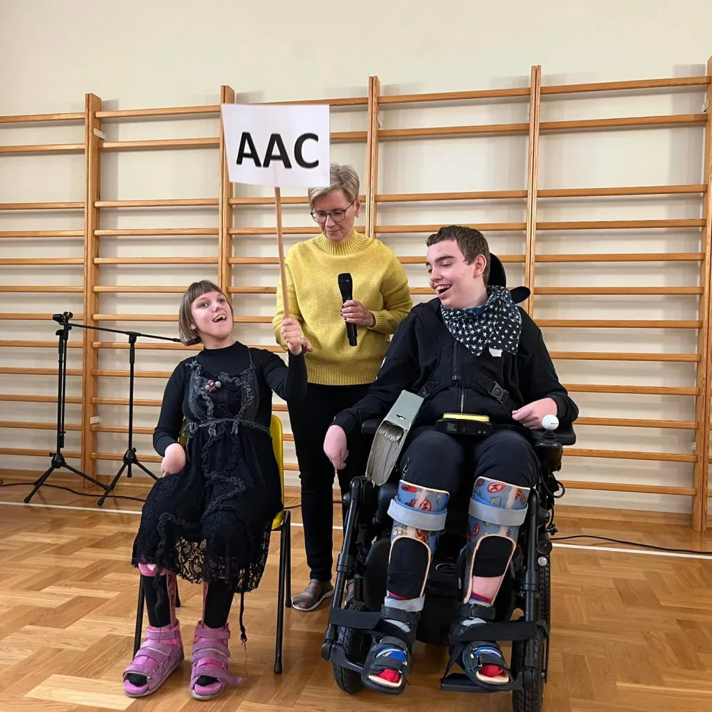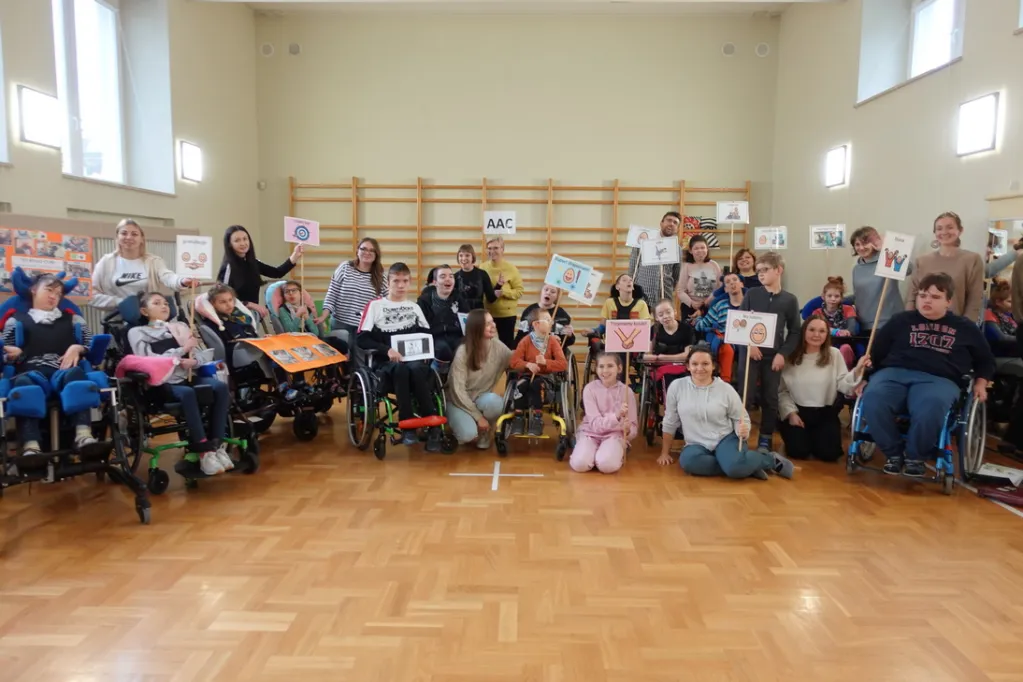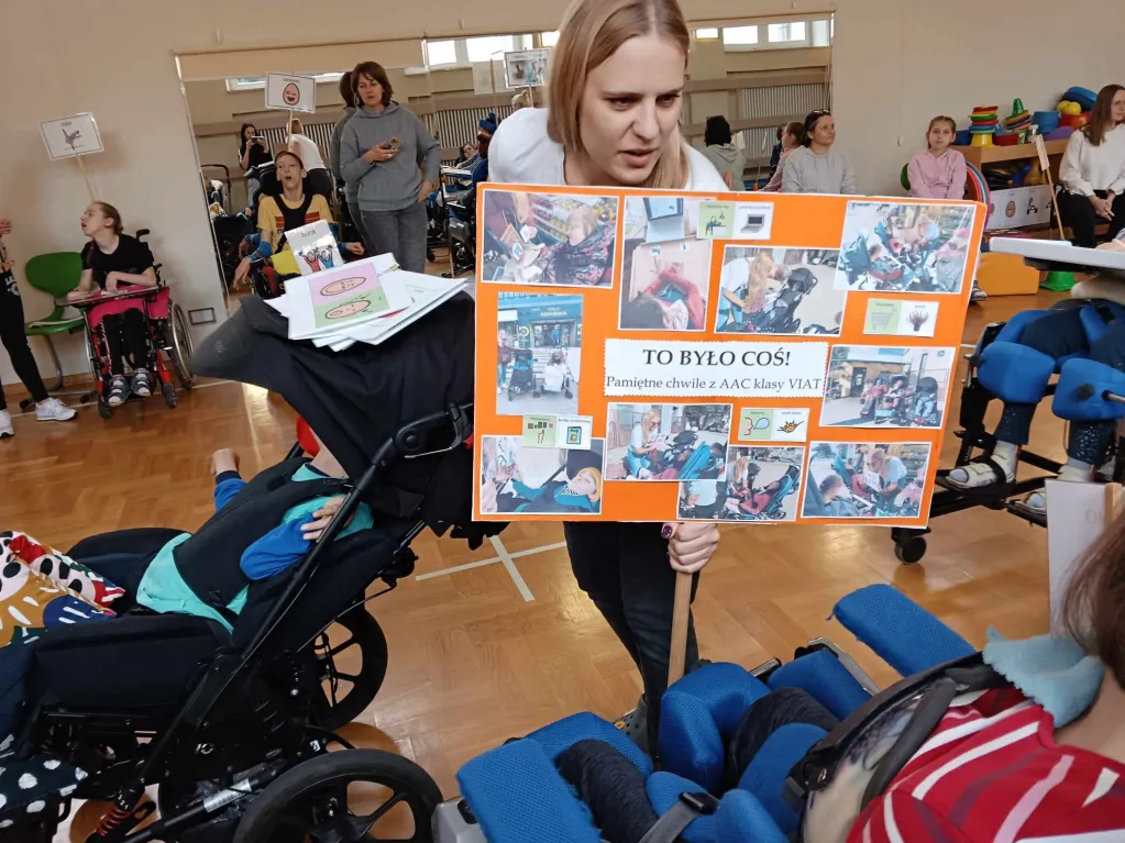 31 października 2023r odbył się apel podsumowujący obchody Międzynarodowego Miesiąca AAC w naszej szkole. W sali gimnastycznej spotkali się wszyscy uczniowie klas starszych, nauczyciele, specjaliści i asystenci. Po powitaniu wspólnie zaśpiewaliśmy piosenkę „Słowem, książką, gestem”. Potem każda klasa, wykorzystując gesty, symbole PCS, komunikatory i włączniki, przedstawiła swoje hasła dot. komunikacji wspomagającej i alternatywnej (AAC). Odbył się również wyjątkowy konkurs! Przez cały październik nauczyciele i specjaliści przeprowadzali z uczniami wywiady dot. AAC. Dzieci i młodzież odpowiadały m.in. na pytania o najważniejsze, najpotrzebniejsze, najczęściej używane, najśmieszniejsze symbole i gesty, najbardziej interesujące tematy rozmów i dyskusji, ulubionych partnerów komunikacyjnych i powody, dla których komunikacja wspomagająca i alternatywna jest dla nich ważna i potrzebna. Podczas apelu mieliśmy okazję posłuchać wypowiedzi koleżanek i kolegów i zgadywać, o kogo chodzi. Dowiedzieliśmy się wiele o sobie. Z radością będziemy wspominać to nasze spotkanie, które idealnie wpisało się w tegoroczne hasło Międzynarodowego Miesiąca AAC: „To było coś! Pamiętne chwile z AAC!”
