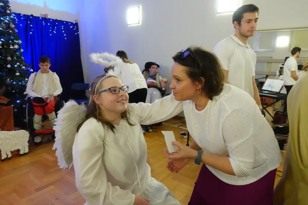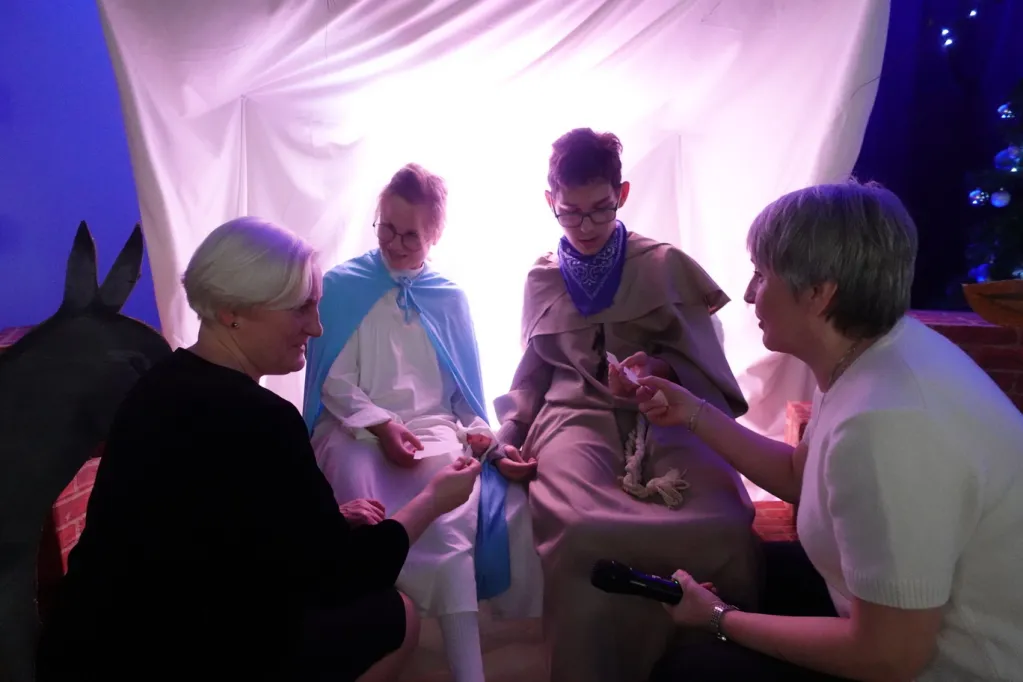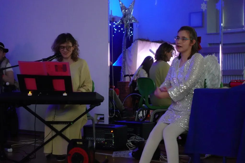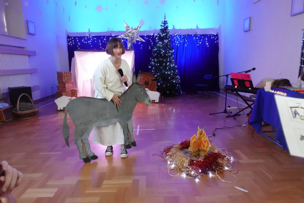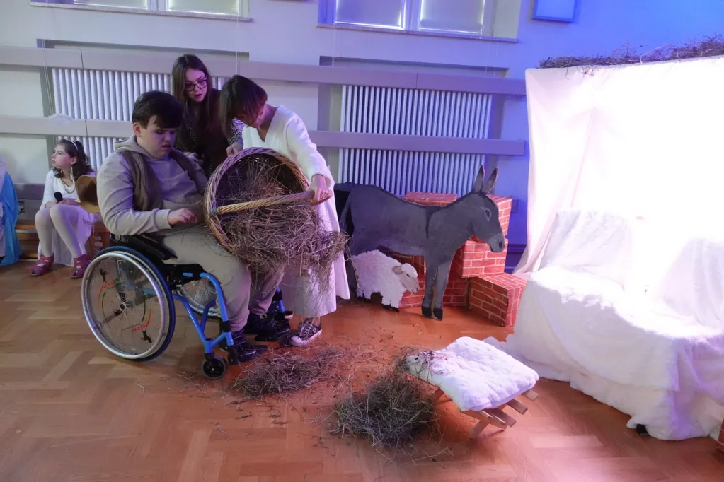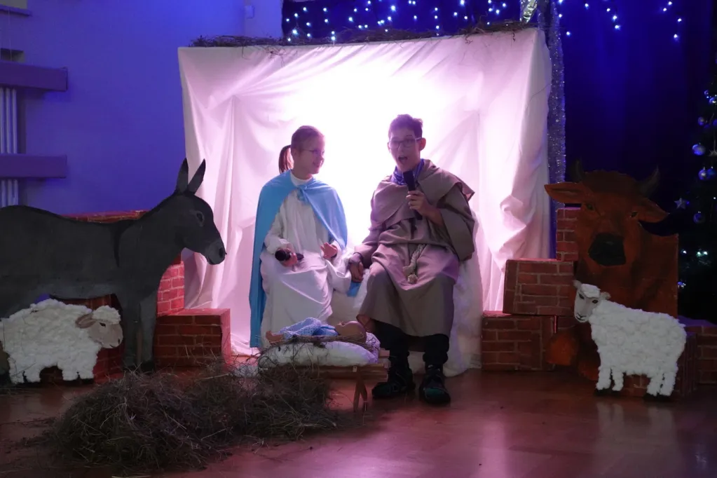 W czwartek, 19 grudnia najstarsze klasy spotkały się na uroczystości wigilijnej. Sala była cudownie ustrojona. Przybyło wielu rodziców i zaproszonych gości. Uczniowie przygotowali Jasełka, w które zaangażowano całą publiczność. Wspólnie budowaliśmy szopkę, usypialiśmy Maleństwo, nieśliśmy z królami dary do żłóbka. Pasterze wędrowali za aniołem, a cherubini przygrywali na instrumentach. Całe spotkanie przeplatane było wspólnym śpiewaniem kolęd przy akompaniamencie pianina. W muzykowaniu pomagały nam gesty i śpiewniki z PCS. Na koniec dzieliliśmy się opłatkiem. Jeśli spełnią się wszystkie życzenia, to czekają nas cudowne Święta i fantastyczny Nowy Rok.