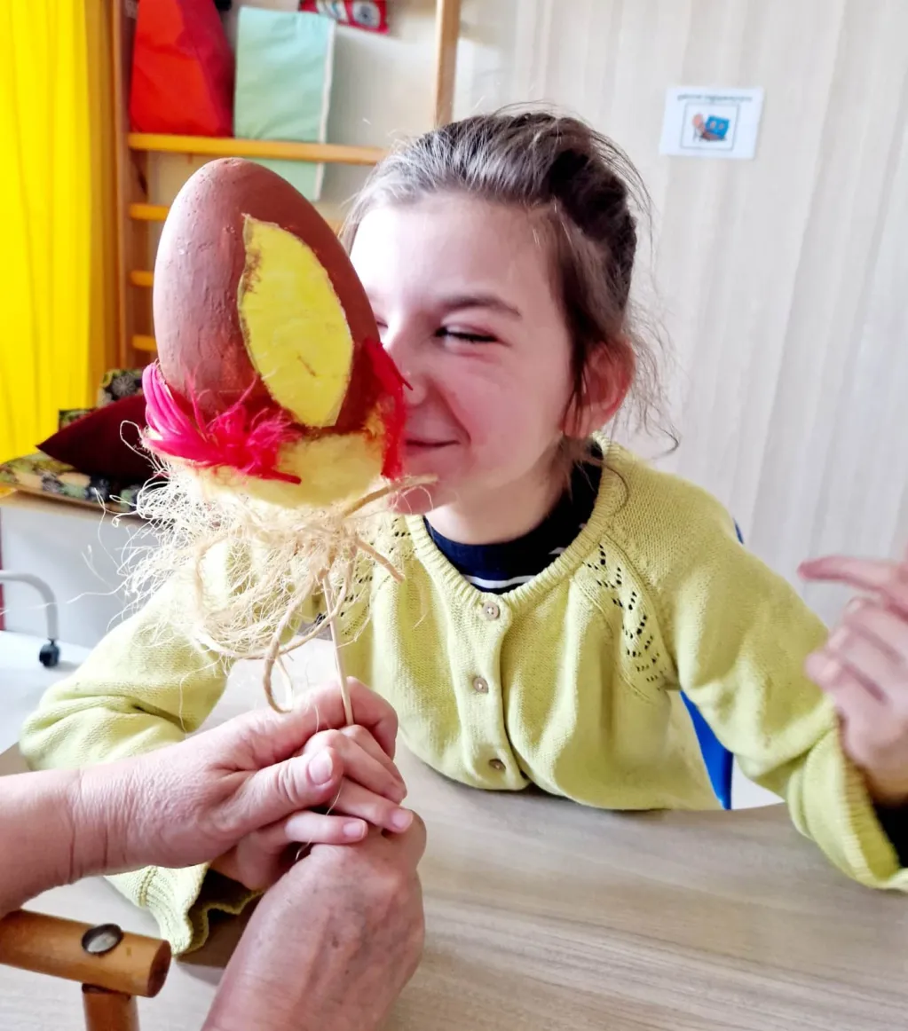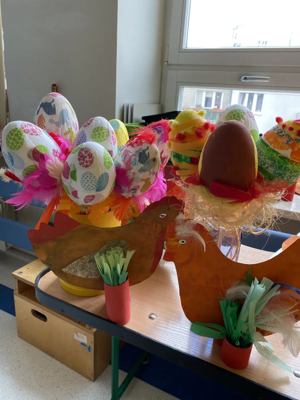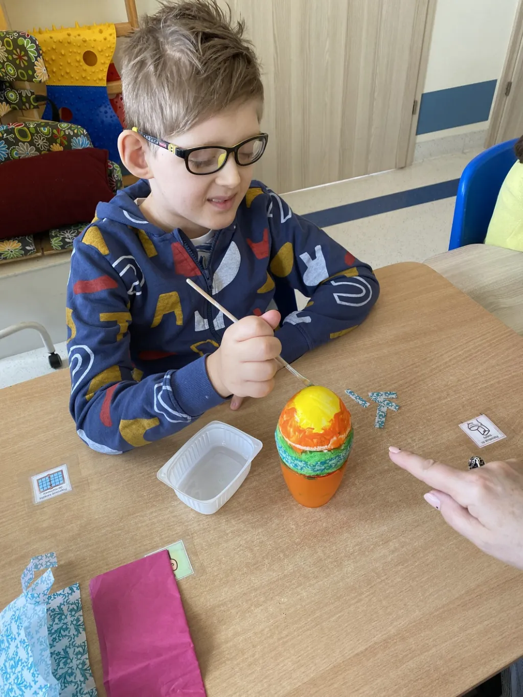 Malowali jajka (zobaczcie jakie śliczne pisanki) oraz do pisanek kolorowe kurki.