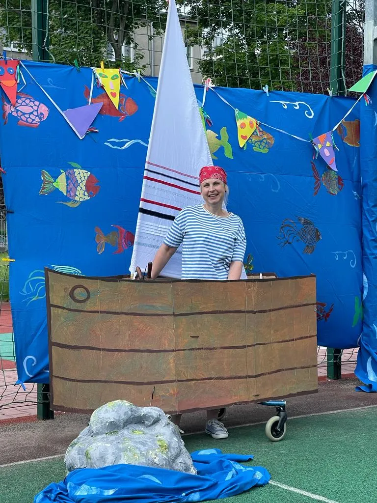 Motywem głównym spotkania była podróż po morzach i oceanach w rytm muzyki i tańca z różnych stron świata. Żeglarka przy wspólnym śpiewie szant, podróżowała przez: Polskę, Afrykę, Hawaje, Indie, aż do słonecznej Hiszpanii. Do Zabawy zostali włączeni także rodzice. Na koniec każda klasa przygotowała pamiątkę z podróży. Całość uzupełniła biesiada w cieniu drzew i przy pysznym jedzeniu, za które serdecznie dziękujemy rodzicom.