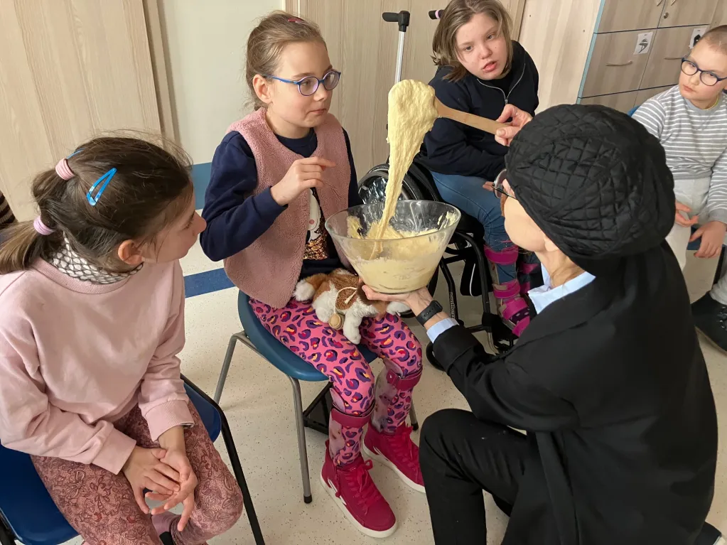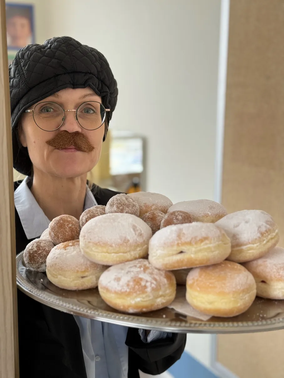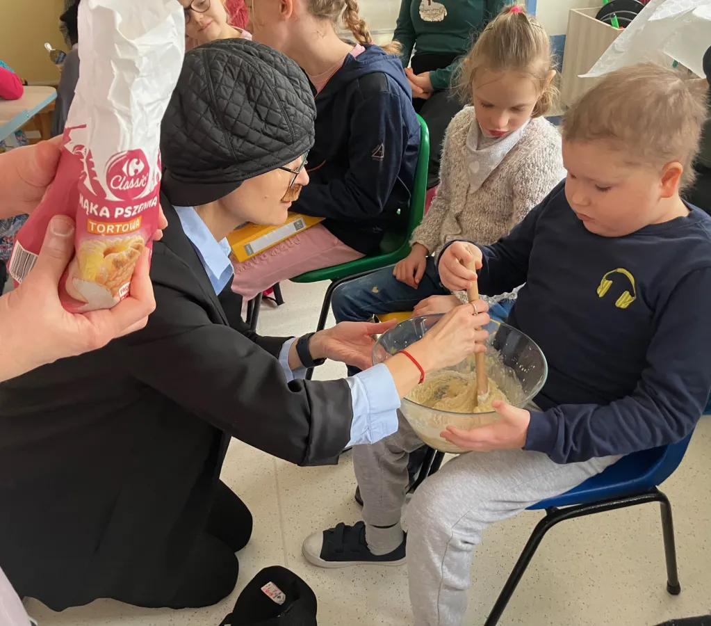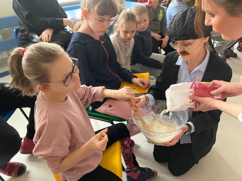 Dnia 8 lutego w tradycyjny tłusty czwartek uczniowie z klas młodszych I-III zebrali się, aby powitać gości. Łakomczuchów z 3 piętra odwiedziła Bartkowa wraz z mężem Bartłomiejem. Wspólnie z dziećmi celebrowali święto pączka. Uczniowie poznali tajniki dobrego przepisu na pączki, wielozmysłowo rozpoznawali poszczególne produkty żywnościowe, robili ciasto. Wszystko po to, by na sam koniec delektować się świeżo upieczonymi pączuchami.