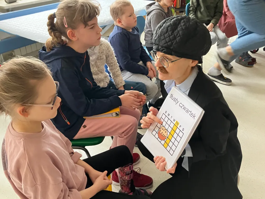 Dnia 8 lutego w tradycyjny tłusty czwartek uczniowie z klas młodszych I-III zebrali się, aby powitać gości. Łakomczuchów z 3 piętra odwiedziła Bartkowa wraz z mężem Bartłomiejem.