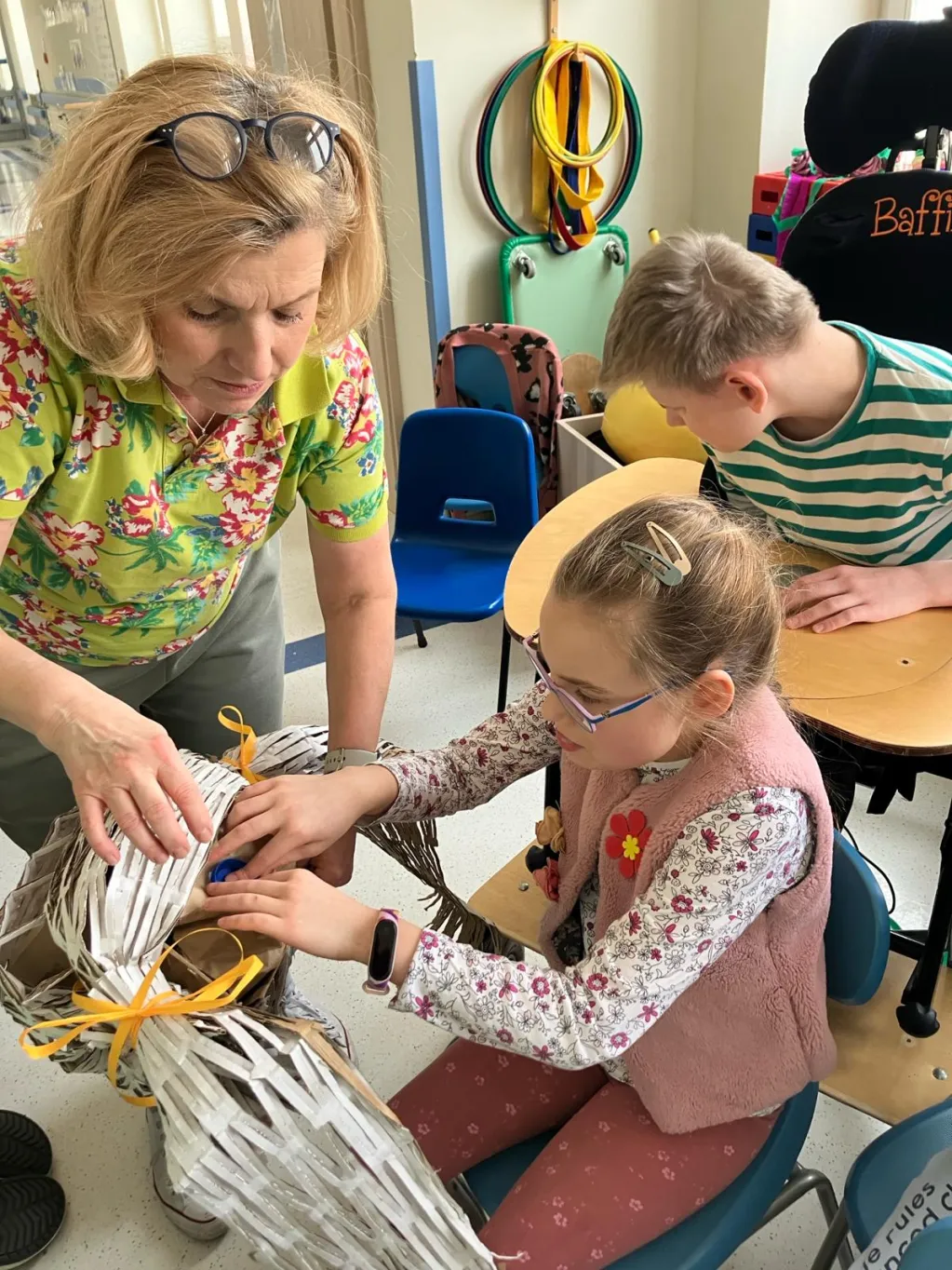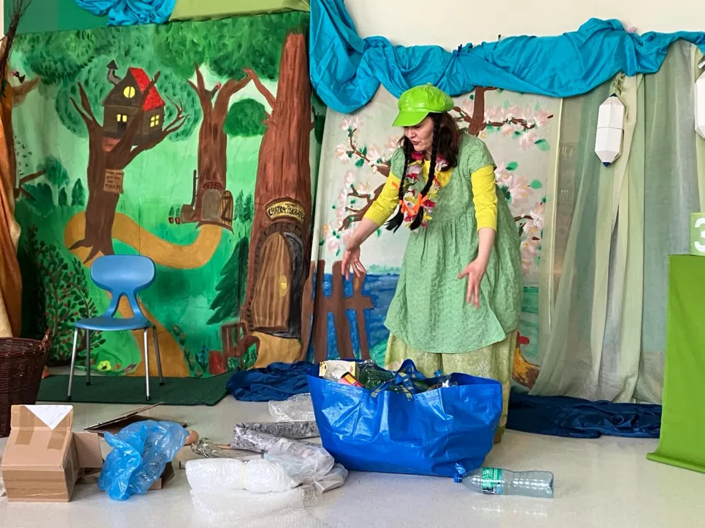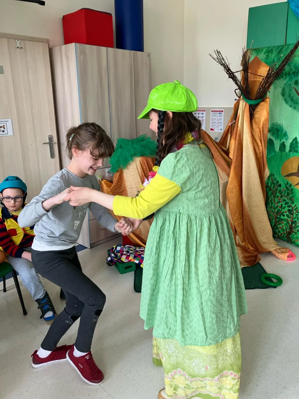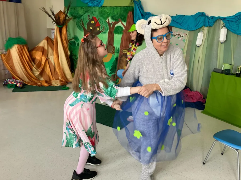 21 marca na III piętrze zawitał gość, na którego uczniowie klas I –IV bardzo długo czekali. Okazała się nim Pani Wiosna. Razem z dziećmi serdecznie, ale stanowczo pożegnała Zimę i zaprosiła wszystkich do zabawy. Z materiałów recyklingowych uczestnicy imprezy przygotowali Marzannę, która potem symbolicznie popłynęła z nurtem materiałowej rzeki. Czując wiosenną aurę obudził się miś BuBu, który dołączył do wspólnej zabawy i częstował chętnych pysznym, słodkim miodkiem. Na koniec wszyscy cieszyli się nadejściem wiosny, tańcząc w rytm znanych piosenek.