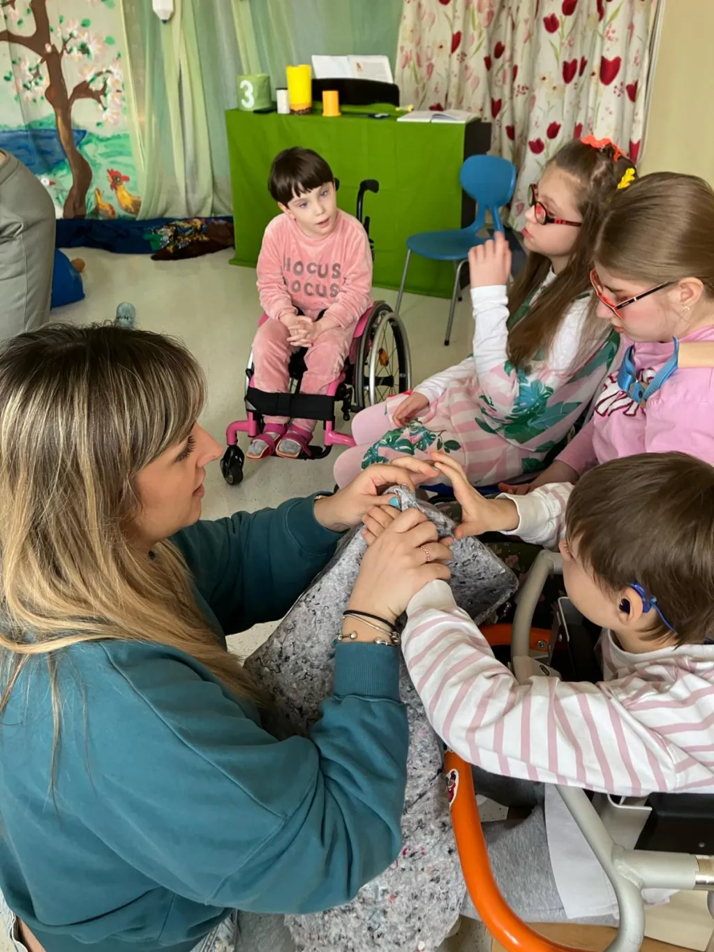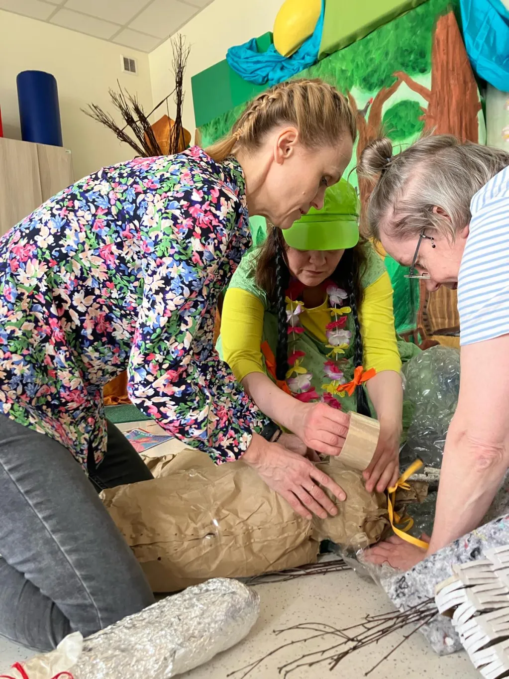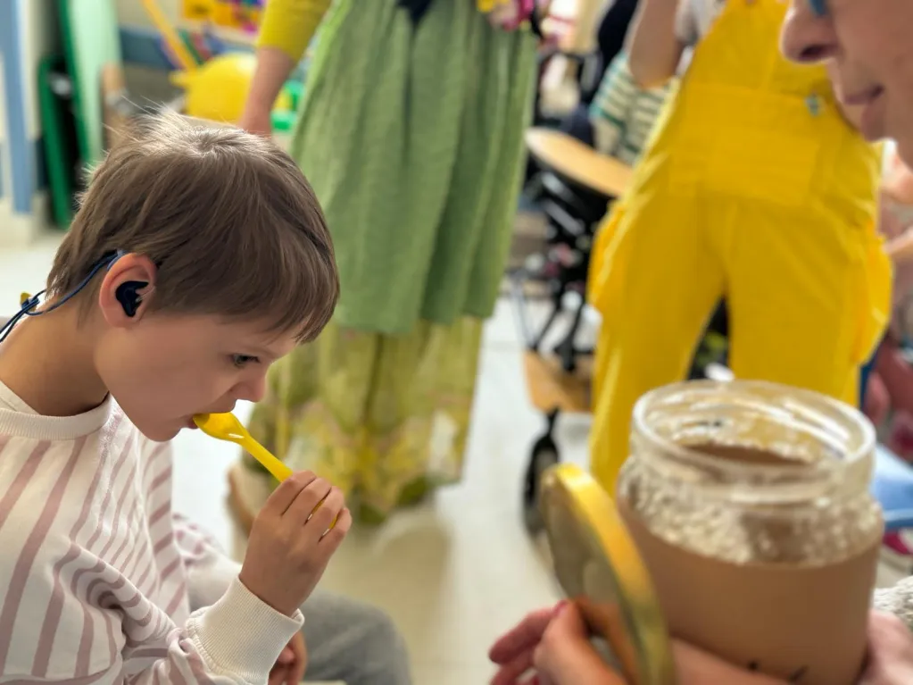 21 marca na III piętrze zawitał gość, na którego uczniowie klas I –IV bardzo długo czekali. Okazała się nim Pani Wiosna. Razem z dziećmi serdecznie, ale stanowczo pożegnała Zimę i zaprosiła wszystkich do zabawy. Z materiałów recyklingowych uczestnicy imprezy przygotowali Marzannę, która potem symbolicznie popłynęła z nurtem materiałowej rzeki. Czując wiosenną aurę obudził się miś BuBu, który dołączył do wspólnej zabawy i częstował chętnych pysznym, słodkim miodkiem. Na koniec wszyscy cieszyli się nadejściem wiosny, tańcząc w rytm znanych piosenek.