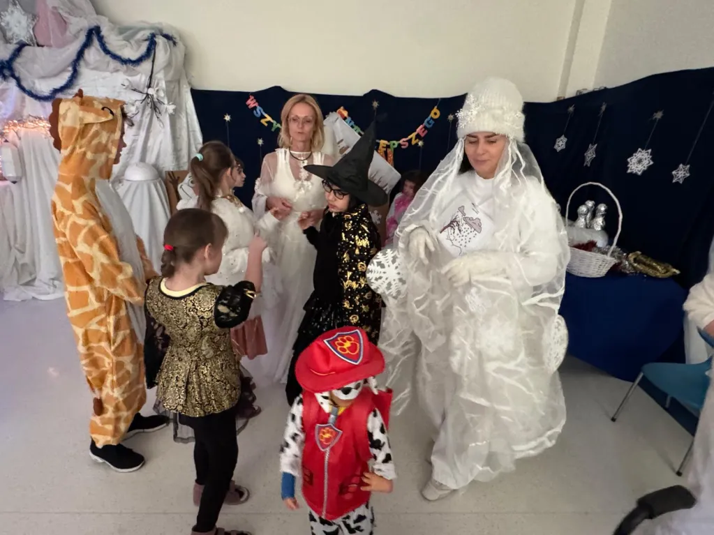 Na balu pojawił się prawdziwy „lodowy pokaz mody” – były księżniczki, bohaterowie bajek, zwierzątka (niektóre bardzo dzielne, bo tańczyły bez przerwy!). W jednym miejscu spotkały się postacie, które na co dzień raczej się nie widują… i wyszło im to świetnie. Ogromne podziękowania dla Rodziców za fantastyczne stroje – dzięki Wam było kolorowo, bajkowo i bardzo efektownie!
