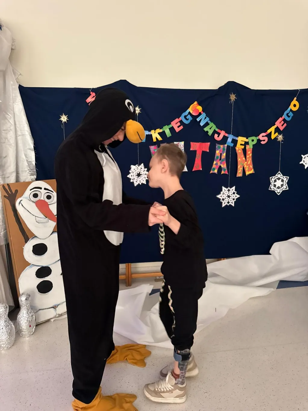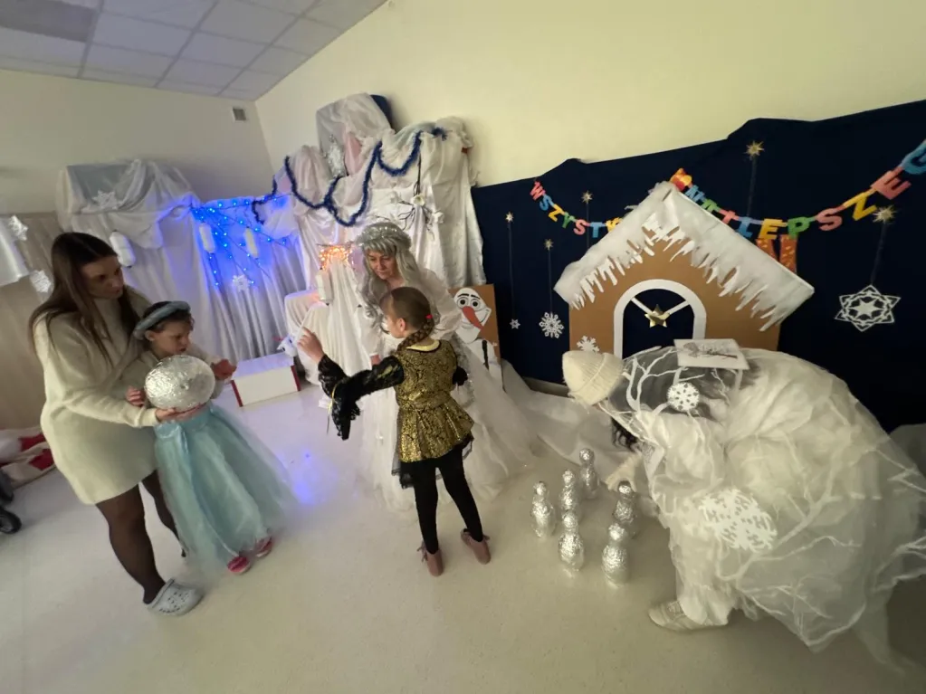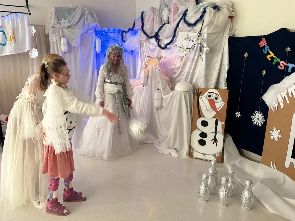 Atrakcji nie brakowało: lodowe kręgle wywoływały emocje jak na mistrzostwach świata (czasem kula miała własne zdanie). Zabawy z chustą Klanza zamieniały uczestników w wir radości, a tańce sprawiły, że parkiet ani na chwilę nie odpoczął. Prawdziwą gwiazdą wydarzenia była Królowa Lodu, która czarowała i zamieniała dzieci w lodowe posągi… na szczęście zaklęcie „muzyka!” skutecznie odmrażało wszystkich w kilka sekund!