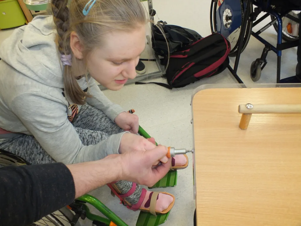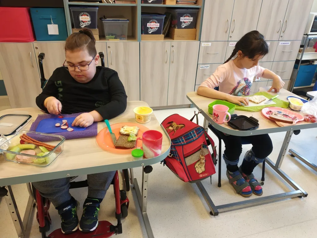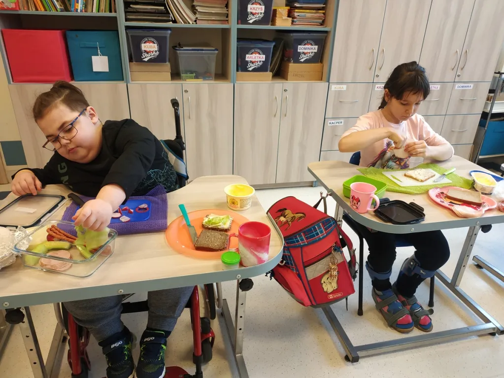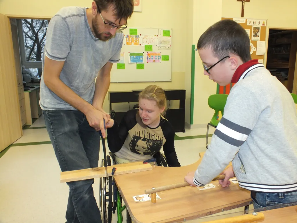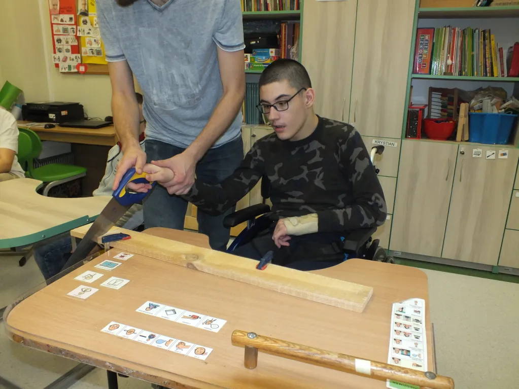 Nasza szkoła zapewnia wszystkim uczniom indywidualną i grupową rehabilitację ruchową. Ale najważniejszym elementem usprawniania ruchowego dzieci i młodzieży z niepełnosprawnością ruchową jest transfer nabywanych umiejętności motorycznych na życie codzienne. Jeśli dziecko umie przemieszczać się przy sprzętach typu balkonik, trójnogi czy kule to musimy starać się, aby taka mobilność (nawet gdy wymaga asekuracji osoby dorosłej) była wykorzystywana przez ucznia w trakcie całego szkolnego dnia i w celowy sposób. Tylko wówczas możemy mówić o sukcesach w rehabilitacji. Wszystkie codzienne czynności, np.: przygotowanie śniadania, podlewanie kwiatów w ogródku czy też budowanie budki dla ptaków na zajęciach techniki stanowią ważne ogniwo w rehabilitacji funkcjonalnej uczniów szkoły.