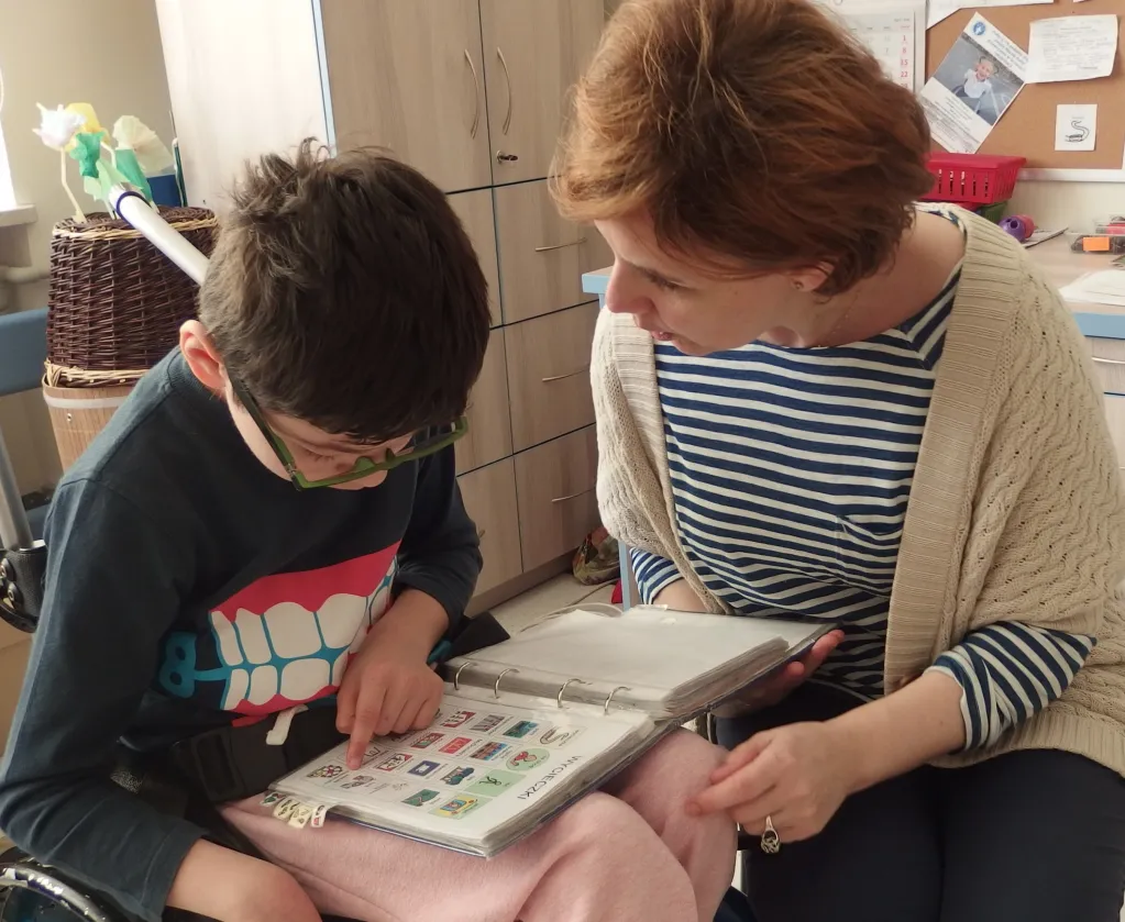 - przygotowujemy do korzystania z technologii wspomagającej (urządzenia generujące głos, specjalistyczne oprogramowanie)