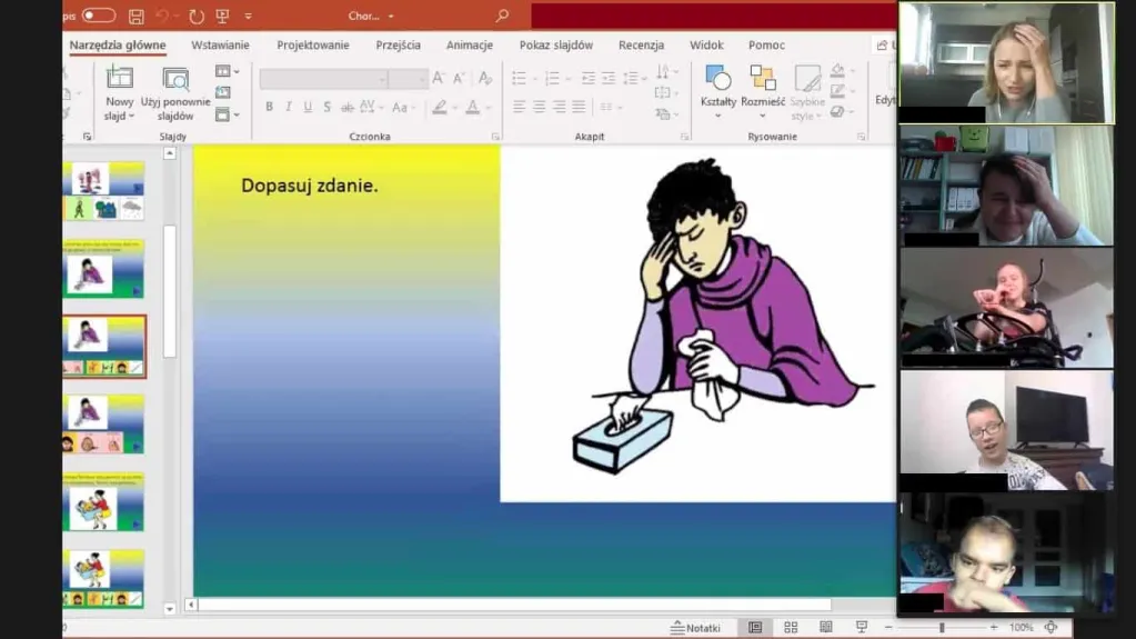 W związku z pandemią Covid -19 od marca 2020 roku prowadzimy okresowo nauczanie zdalne. W czasie, gdy szkoły były zamknięte, uczniowie brali udział w grupowych i indywidualnych zajęciach on-line za pośrednictwem platform Cisco Webex i Zoom. Lekcje prowadzone były zarówno przez nauczycieli – wychowawców, nauczycieli przedmiotów, jak też terapeutów i specjalistów. Nauczanie zdalne odbywało się na wszystkich poziomach nauczania zaczynając od przedszkola. Ilość zajęć została dostosowana do możliwości uczniów oraz organizacji pracy w rodzinie. Lekcje trwały zazwyczaj ok. 30 – 40 minut. W ciągu jednego dnia dzieci i młodzież uczestniczyli w kilku (2 – 4) zajęciach online. Taka organizacja podyktowana było higieną pracy przed komputerem oraz możliwościami uczniów.