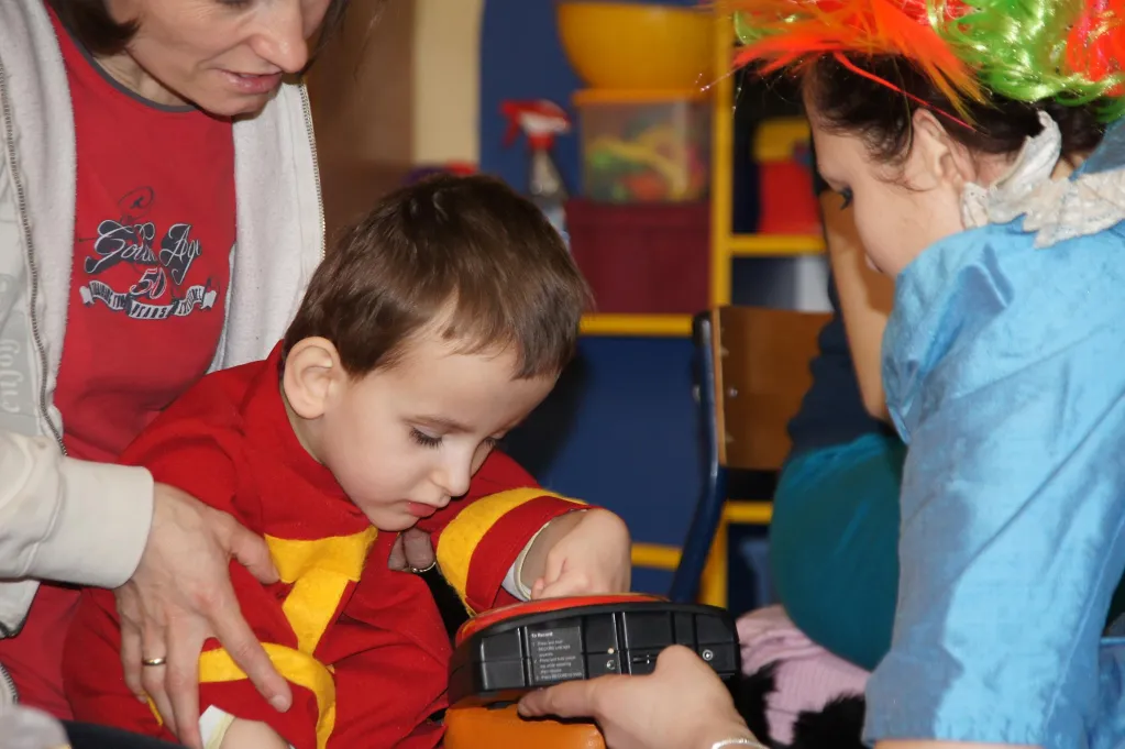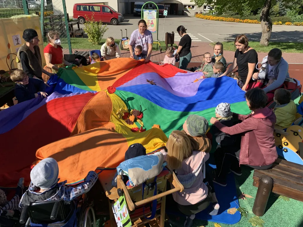 Od wielu lat współpracujemy z Przedszkolem Integracyjnym nr 404 w Warszawie. Dzieci z obydwu przedszkoli spotykają się cyklicznie. Podczas wspólnej zabawy upowszechniamy metody porozumiewania się z dziećmi niemówiącymi, pokazujemy jak rozmawiać z wykorzystaniem pomocy do komunikacji. Dla naszych maluchów wyprawa do publicznego przedszkola jest dużym wydarzeniem a zaplanowane aktywności przełamują bariery i integrują nas ze środowiskiem lokalnym. Spotkania stanowią także okazję do wymiany informacji i doświadczeń nauczycieli wychowania przedszkolnego.