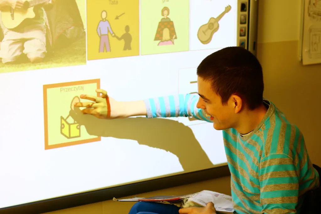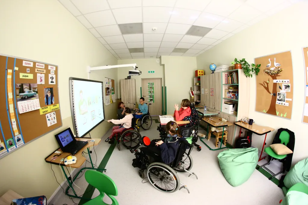 Każda klasa w szkole jest wyposażona w komputer, ekran dotykowy oraz różnorodne urządzenia peryferyjne (specjalistyczne myszy, przyciski, power link, styp by styp) pozwalające na wykorzystanie technologii w sposób dostosowany do możliwości uczniów. Dzięki temu lekcje są atrakcyjniejsze, dają poczucie sprawczości dzieciom i młodzieży również ze znaczną niepełnosprawnością ruchową. Wykorzystanie technologii podczas różnorodnych zajęć umożliwia efektywniejsze nabywanie wiedzy, utrwalanie wprowadzanego materiału. Urządzenia wysokiej i niskiej technologii używane są także podczas przerw, wyjść, imprez i uroczystości. Pozwalają na podniesienie atrakcyjności spotkań, umożliwiają samodzielne działanie, sprzyjają komunikacji.